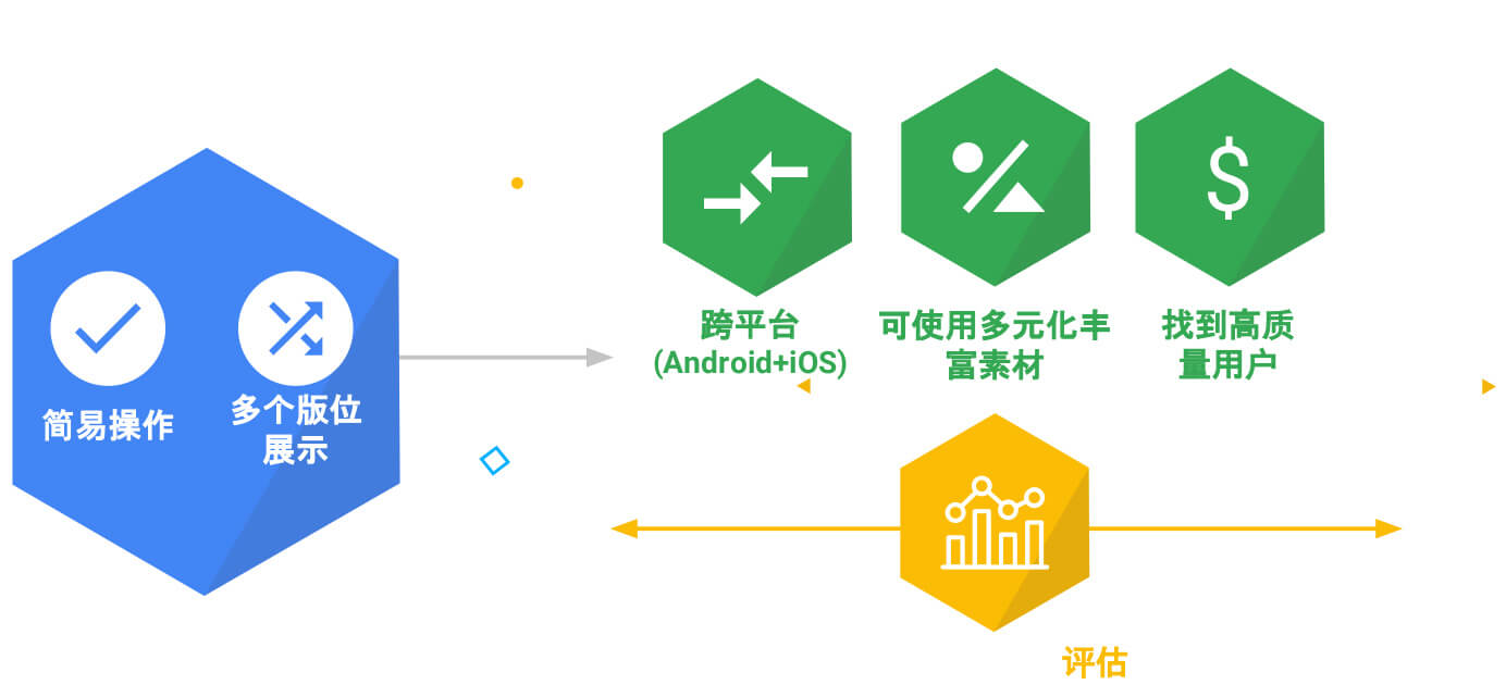 UAC使用Google独特的机器学习技术,根据您的业务目标,通过Google Play,Google.com,YouTube以及数百万个展示广告网络中的网站和应用,帮助您找到最重要的客户